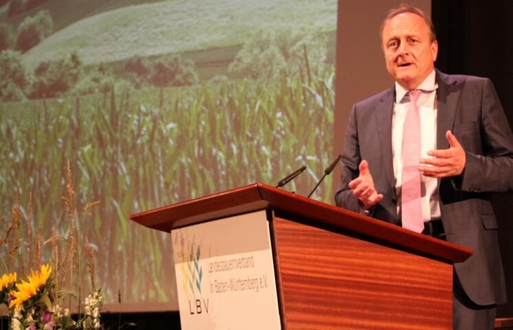 Im vor- und im nachgelagerten Bereich habe die Landwirtschaft starke Unternehmen, die sich auf die Märkte konzentrieren und wettbewerbsfähig seien, erklärt Rukwied am 16. Juni 2016 vor über 300 Delegierten und Gästen aus Politik, Wirtschaft und Gesellschaft bei der LBV-Mitgliederversammlung in Fellbach (Rems-Murr-Kreis). Trotz aller aktuellen Schäden durch Hochwasser seien die Witterungsverhältnisse im langjährigen Durchschnitt in Deutschland im weltweiten Vergleich relativ günstig und die Infrastruktur insgesamt gut.