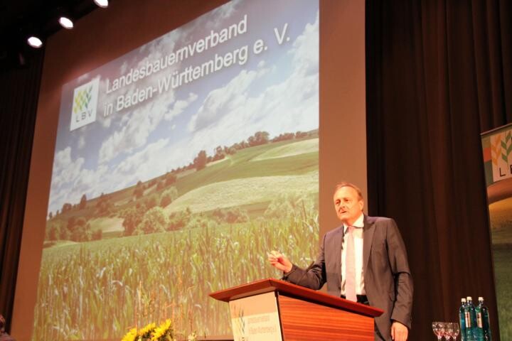 Die von Familien getragene Landwirtschaft hat Zukunft! Zu dieser Überzeugung bekennt sich Joachim Rukwied gleich zu Beginn seiner Ansprache bei der Mitgliederversammlung am 16. Juni 2016 in Fellbach (Rems-Murr-Kreis). Darin bestärkt sieht sich der Präsident des Landesbauernverbandes in Baden-Württemberg (LBV) durch die sehr gute Ausbildung im Berufsstand. Die Bauern erzeugten Produkte, die nicht nur schmecken und gesund sind, sondern zugleich tier- und umweltgerecht produziert wurden.