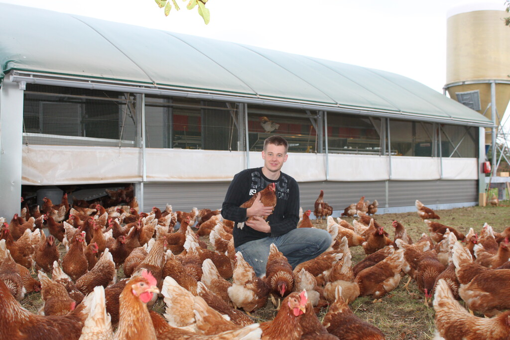 Simon Sperlings Leidenschaft sind die Legehennen. Begeistert erklärt er Kuhn und Ines Aufrecht, Leiterin der Wirtschaftsförderung Stuttgart, wie seine Boden- und Freilandhaltung mit 1,2 Millionen Eiern jährlich funktioniert. „Haben Sie schon einmal überlegt, auf Bio umzustellen?“, fragt der grüne Bürgermeister. „Überlegt, ja. Aber das ist für mich keine Alternative“, erklärt Sperling. Für die Biohaltung fehle ihm Land für Ackerbau und bauliche Maßnahmen sowie Auslauf der Tiere. „Es lohnt sich für mich und meinen Betrieb einfach nicht“, sagt der Jungbauer, der auch dieses Szenario in seiner Meisterarbeit einmal durchgerechnet hat. Zudem habe er sich über Jahre eine gute Vermarktungsstruktur mit seinen Produkten aufgebaut.