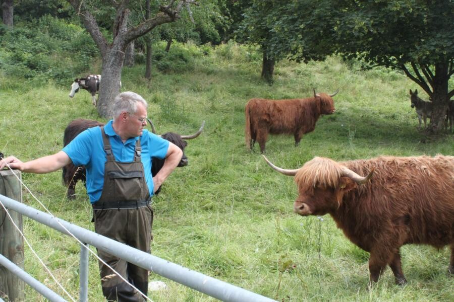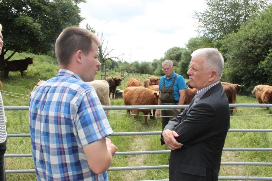 Ein weiteres Steckenpferd der Landwirtsfamilie ist die Landschaftspflege. Die 20 Hochland-Rinder von Vater Hans pflegen Wiesen im Naturschutzgebiet. Hier komme es auch immer wieder zu Konflikten mit Spaziergängern und Hundehaltern erklärt Hans Sperling. „Wir bräuchten dringend Hinweisschilder für die Freizeitsuchenden.“ Kuhn nimmt auch hier jedes Anliegen ernst und wird weiterhin den engen Kontakt mit dem Bauernverband Stuttgart pflegen, um gangbare Kompromisse für die Betriebe zu finden. So auch in Bauangelegenheiten. Sperlings Maschinenhalle habe damals sieben Jahre Genehmigungsphase gebraucht. Jetzt stehen Planungen in Sachen Wohnhaus, Sozialräume für Mitarbeiter und Büro an. Die Stadtbauern haben im Raum Stuttgart mit immer strengeren Anforderungen und Auflagen der Behörden zu kämpfen. Seit Kuhns Amtsantritt finden die Landwirte mit ihren Anliegen Gehör. Eine gute Basis haben alle Beteiligten geschaffen, dass die Landwirtschaft in Stuttgart auch weiterhin eine Zukunft hat.