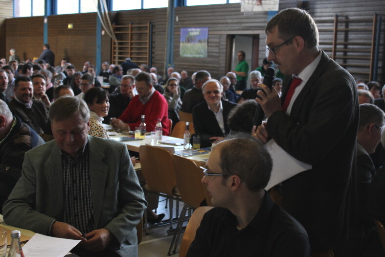 Grußworte hielten Michael Dohnt (MdB CDU), Andreas Glück (MdL FDP) und Thomas Poreski (MdL Grüne) sowie Landrat Thomas Reumann. Er erinnerte an die große Solidarität bei dem Biogas-Unfall vor wenigen Wochen. 1,5 Mio. Liter Gärsubstrat seien hier ausgelaufen, was bundesweit Schlagzeilen gemacht hat. „Ein herzliches Dankeschön an alle Landwirte, die mitgeholfen, morgens um 5 Uhr tausende Liter wegzufahren. Landwirte und der Maschinenring haben hier gesamtgesellschaftliche Verantwortung übernommen und sind einmal mehr für das Gemeinwesen eingestanden“, lobte Rebmann. Er bedauerte, dass die Auszahlungen aus dem Gemeinsamen Antrag im Kreis immer noch nicht ganz abgeschlossen seien. „Das Team am Landwirtschaftsamt macht hier einen riesen Job“, lobte der Landrat. Verantwortlich für die landesweiten Verzögerungen sei ein EDV-Programm. Im Kreis gebe es seit Jahren ein breites Bündnis für regionale Produkte. Es gehe darum, die Menschen aufzuklären, was in den Ställen passiert – Stichwort Gläserne Produktion. Aktuell denke man gemeinsam darüber nach, wie man die Milchviehhalter unterstützen kann. Landschaftserhaltungsverband, Biosphärengebiet, Landkreis sowie Städte und Gemeinden loten Chancen zur Milchverarbeitung aus - ein Vorgaben, welches bei den bestehenden Molkereien allerdings auf wenig Begeisterung stoße.
