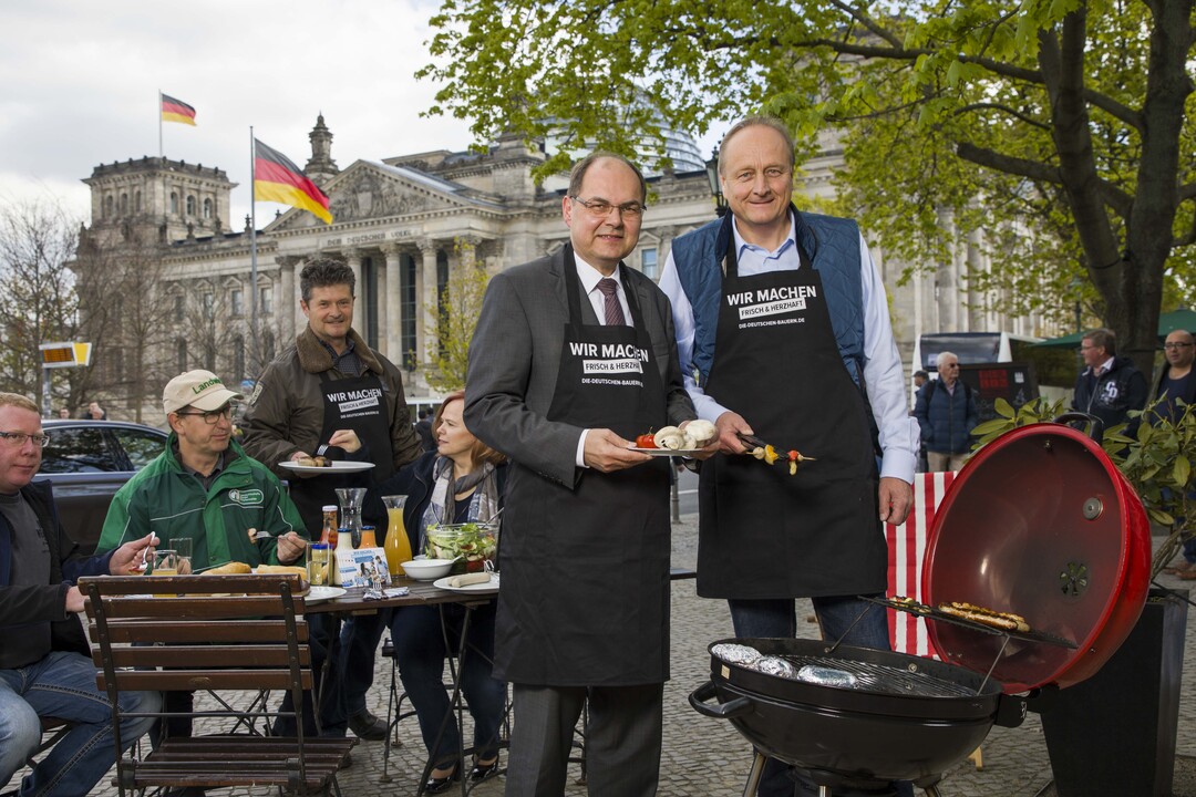 Bauernpräsident Joachim Rukwied und Brandenburger Landwirte geben den Startschuss für den bundesweiten Aktionstag Grillen. Mit Bundeslandwirtschaftsminister Christian Schmidt grillen sie vor dem Reichstagsgebäude in Berlin. "Wir machen deinen Sommer“ ist das Motto des diesjährigen Aktionstages des Deutschen Bauernverbandes, „Zutaten: Kompetenz, Engagement, Veränderung. Denn Landwirtschaft kommt nicht von ungefähr". Zum Angrillen kommen bundesweit Bäuerinnen und Bauern in die Städte und laden Bürgerinnen und Bürger zum Dialog über Landwirtschaft und Tierhaltung ein.