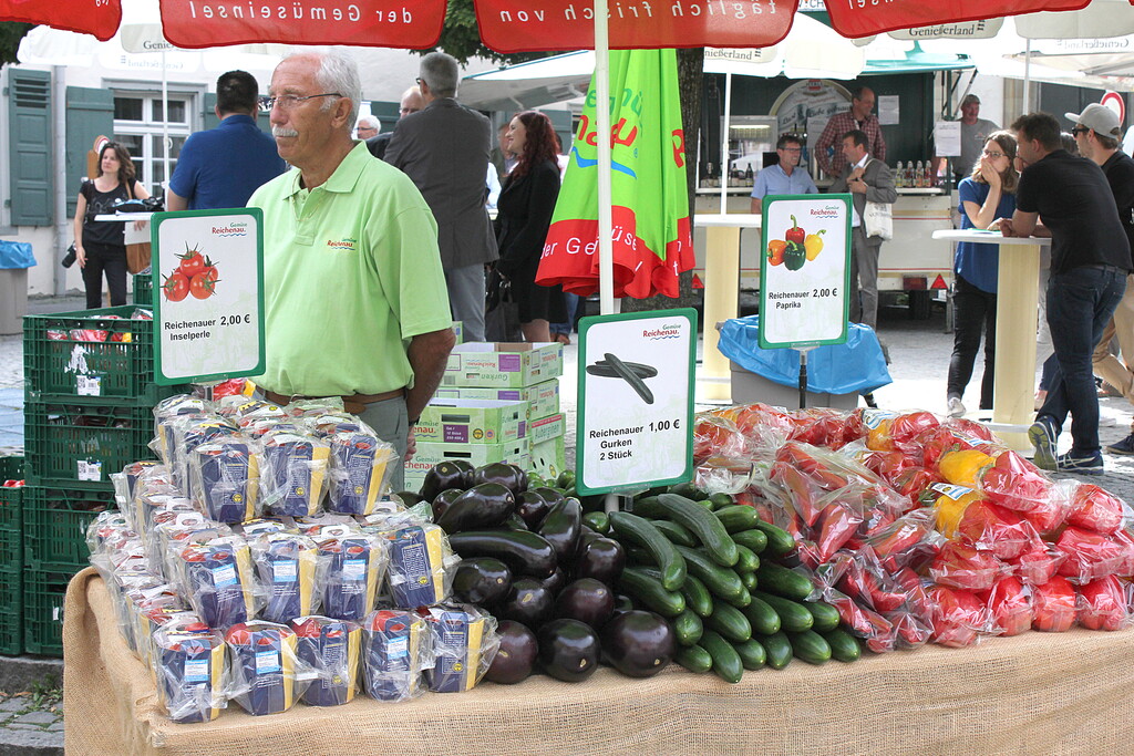 Dort hatten Mitarbeiter des Ministeriums gemeinsam mit der Molkerei Leupolz, der Brauerei Härle, der Käsküche Isny, dem Bauernmarkt Ravensburg, der Genossenschaft Reichenau-Gemüse, den Erzeugern der Höri-Bülle und dem BUND Stände im Stile eines Wochenmarkts organisiert.