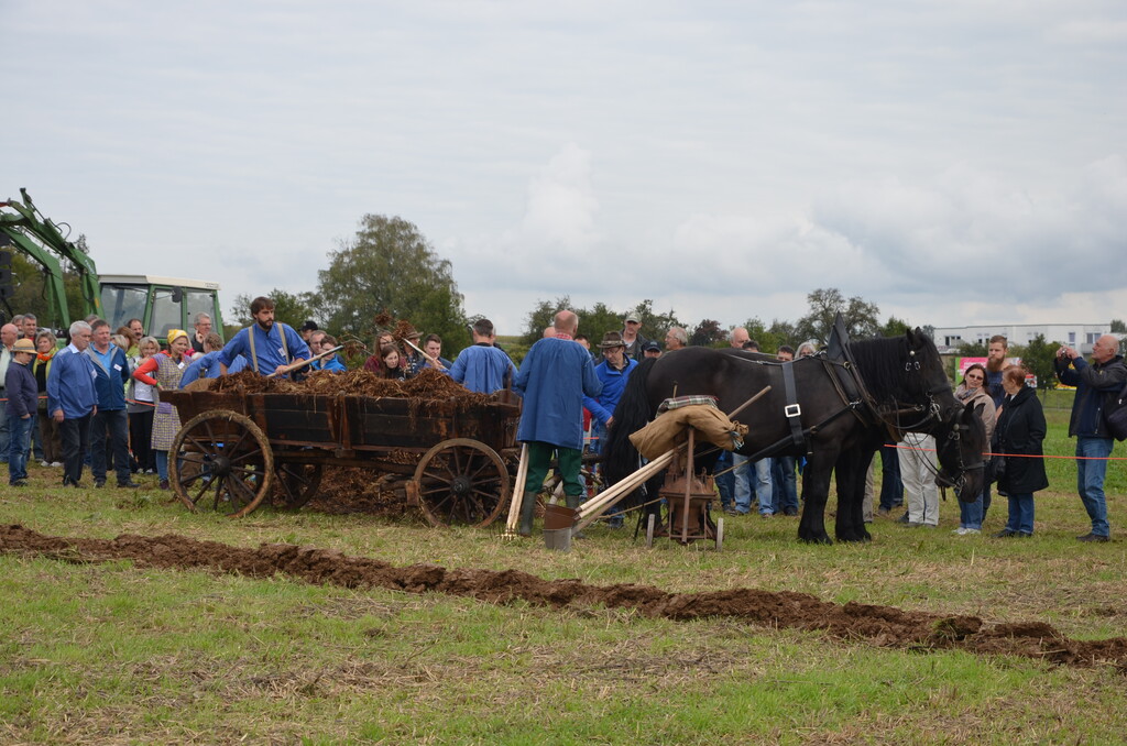 Angefangen mit Schubkarre und Mistgabel brachte man den Festmist sehr zeit- und kraftaufwändig auf den Feldern aus. Eine Arbeit, die gut und gerne einige Tage in Anspruch nehmen konnte. Nach der Schubkarre kamen Pferde gezogene Wagen, die bereits eine deutliche Arbeitserleichterung waren. Eingearbeitet wurde mit Beetpflug und Pferdegespann. Festmistsstreuer folgten auf die Pferd und Mistgabel, die technisch auf immer weiter optimiert wurden.