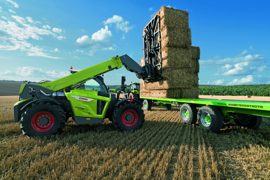 Mit jeweils sieben neuen Scorpion Teleskopladern und Radladern der Torion-Baureihe eröffnete Claas offiziell die Zusammenarbeit mit Liebherr. Die neuen Scorpion Modelle bieten eine höhere Umschlagsleistung durch größere Hubkräfte und neue Fahrerassistenzsysteme, noch mehr Komfort und Wirtschaftlichkeit sowie eine weiter optimierte Sicherheit und Zuverlässigkeit. Dafür sorgen zahlreiche neue Features wie das Dynamic Power Konzept zur Motorsteuerung, das neue Smart Loading Fahrerassistenzsystem zur Feinsteuerung der Arbeitshydraulik und Überlastabsicherung, eine vollautomatische Parkbremse, ein steuerbarer Hundegang als vierte Lenkart sowie ein völlig neu gestaltetes Kabinenkonzept.. Leistungsmäßig decken die Teleskope Hubhöhen von 6,13 bis 7,03 m ab mit Hubkräften von 3,5 bis 5,6 t.