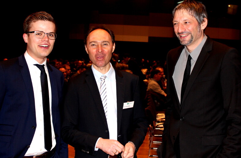 Gleich zum Auftakt gibt es für die Zuhörer spürbare Impulse aus berufenem Munde. Professor Dr. Dr. h. c. Clemens Fuest beleuchtet „Die deutsche Wirtschaft zwischen Trump, Brexit und Eurokrise“. Den Präsidenten des ifo-Institutes aus München und vielfach ausgezeichneten Ökonomen als Redner live zu hören, ist das erste Highlight der Großveranstaltung. Rukwied freut sich sichtlich, als er den Ökonomen aus München begrüßt und auf die Bühne bittet. Applaus braust auf. Es wird spannend.