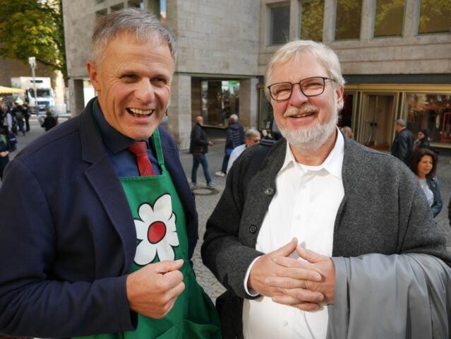 Eingeladen zum Erntedank-Wochenmarkt hatten die Märkte Stuttgart GmbH mit ihrem Geschäftsführer Thomas Lehmann und die Wochenmarktbeschicker mit ihrem Sprecher Henk van der Geer, Gärtner aus Fellbach-Schmiden (Rems-Murr-Kreis). Durch das außerordentliche Engagement und die gespendeten Erntegaben der Marktbeschicker und aller Helfer, unter anderen vom Gärtnerei- und Landesbauernverband, können die kirchlichen Hilfswerke "Brot für die Welt" und "Misereor" unterstützt werden.
