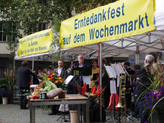 Verkauf gestifteter Erntegaben der Marktbeschicker zu Gunsten von „Brot für die Welt" und "Misereor"