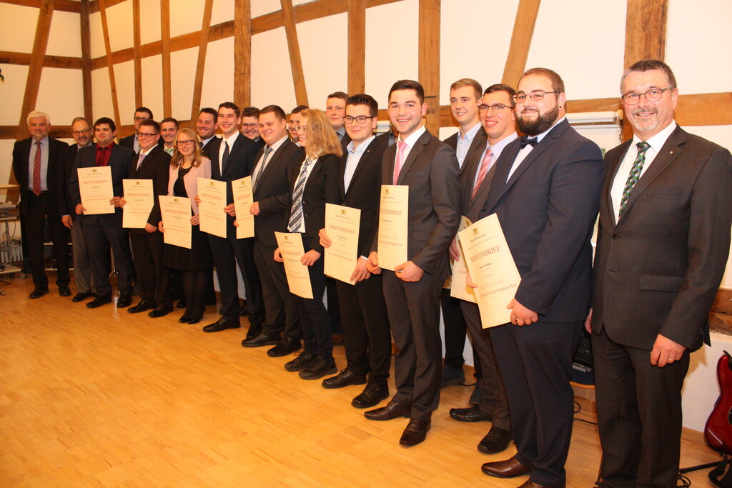 Als „Superjahrgang“ bezeichnete Abteilungspräsident Dr. Kurt Mezger die Meisterprüfungsteilnehmer 2018, von denen alle 19 bestanden haben. Die Noten liegen im Durchschnitt der vergangenen Jahre. Die beste Note war 1,7 „und das heißt was bei der Meisterprüfung“, hob Dr. Mezger vom Stuttgarter Regierungspräsidium hervor.