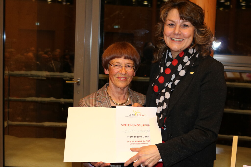 Mit der Goldenen Ähre des Landesbauernverbandes und der Silbernen Biene mit Landeswappen des Landfrauenverbandes Württemberg-Hohenzollern, ist Brigitte Doldi, die stellvertretende Schulleiterin der Schwäbischen Bauernschule Bad Waldsee, in den Ruhestand verabschiedet worden. Die jeweils höchsten Auszeichnungen ihrer Verbände überreichten Präsident Joachim Rukwied und Präsidentin Juliane Vees am Freitag vergangener Woche bei der feierlichen Verabschiedung vor rund 100 geladenen Gästen in Bad Waldsee.