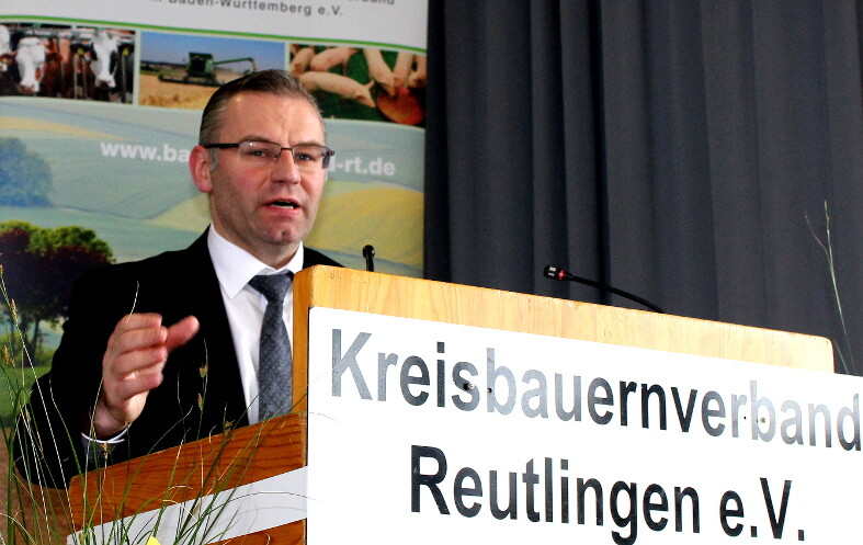 Wie Peter Hauk erläuterte, gibt es im EU-Budget jedes Jahr 48 Mrd. Euro für die Landwirtschaft. Künftig soll die Summe auf 44 Mrd. Euro runtergehen. Unterstützt werden mit diesem Geld 7 Mio. Landwirte, darunter auch 1160 Landwirte im Kreis Reutlingen. Für ihre Leistungen bekamen sie im vergangenen Jahr insgesamt 19 Mio. Euro oder durchschnittlich 16.000 Euro pro Betrieb. Der stellvertretende KBV-Vorsitzende Albert Werner relativierte die 16.000 Euro in einem Statement im Anschluss an Hauks Vortrag. Werner müsse auf seinem Betrieb einen neuen Güllebehälter bauen, weil die Düngeverordnung längere Lagerzeiten vorschreibe. 20.000 Euro dürften allein dafür kaum ausreichen, rechnete der Landwirt vor. Dies zeige, wie hohe Baukosten und Auflagen die Prämiengelder regelrecht auffressen würden. In Sachen Genehmigungsverfahren forderte der Minister die Landräte auf, die Spielräume in der Gesetzgebung im Sinne der Unternehmer auszulegen und zu nutzen, zum Beispiel beim Bau größerer Gewächshäuser unter Glas. Die Flurneuordnung, die Marktstrukturverbesserung und die Optimierung der Beratung habe bereits viel gebracht, um die Wettbewerbsfähigkeit der Agrarbetriebe zu verbessern.
