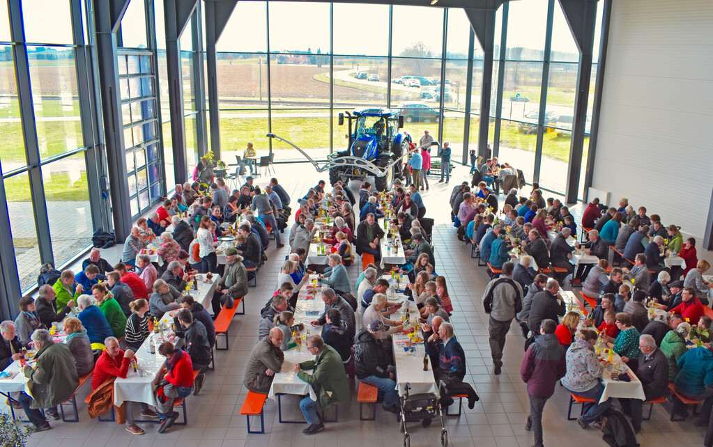 Auf dem Parkplatz reihten sich Autos mit Kennzeichen von Tübingen bis Sankt Gallen. Es kamen so viele Besucher zur Frühjahrsausstellung wie nie zuvor. Auf dem großzügigen Gelände waren an beiden Ausstellungstagen viele technische Neuheiten der Firmen New Holland, GEA, Weidemann, Kuhn und Bergmann ausgestellt.