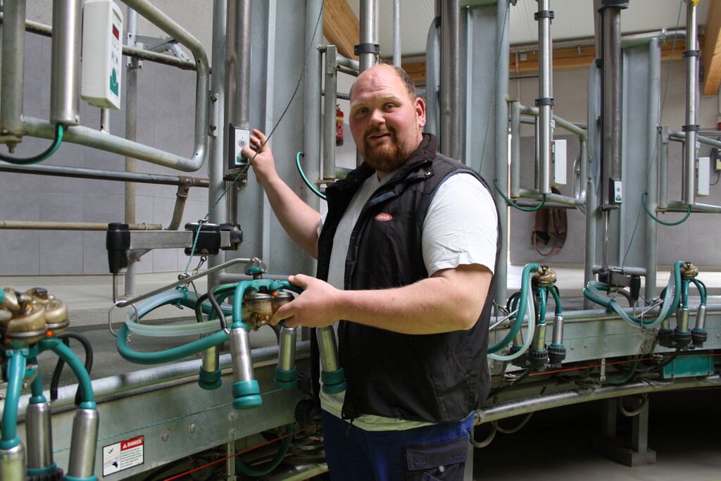 „Wir hatten damals schon 90 Kühe und wollten weiter wachsen“, erläutert der Milchviehhalter die Gründe für die Investition. Der Doppel-5-er Fischgrätenmelkstand war mit den steigenden Kuhzahlen auf dem Aussiedlerbetrieb in Mörtingen (Ostalbkreis) an einer Kapazitätsgrenze angelangt. Der noch neuen Robotertechnik vertraute die Familie nur bedingt, zumal sie, wie der Landwirt an diesem Frühlingstag erklärt, gleich zwei solcher automatischen Anlagen hätten anschaffen müssen.