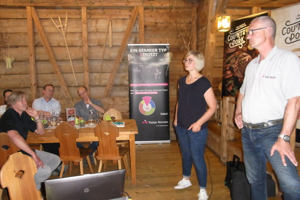 Was ihre Zukunft und die Weiterentwicklung des Betriebes anbelange, sei derzeit vieles im Gespräch. Zunächst erhoffen sich Klara-Maria Haas und ihre Eltern jedoch ein praxisfähiges Verfahren für das Verbot der betäubungslosen Kastration. „Vielleicht kommt der vierte Weg ja doch noch“, antwortet Vater Martin auf die Fragen aus dem Publikum. Mit der versuchsweisen Mast von Ebern hätten sie jedenfalls keine allzu guten Erfahrungen gemacht.