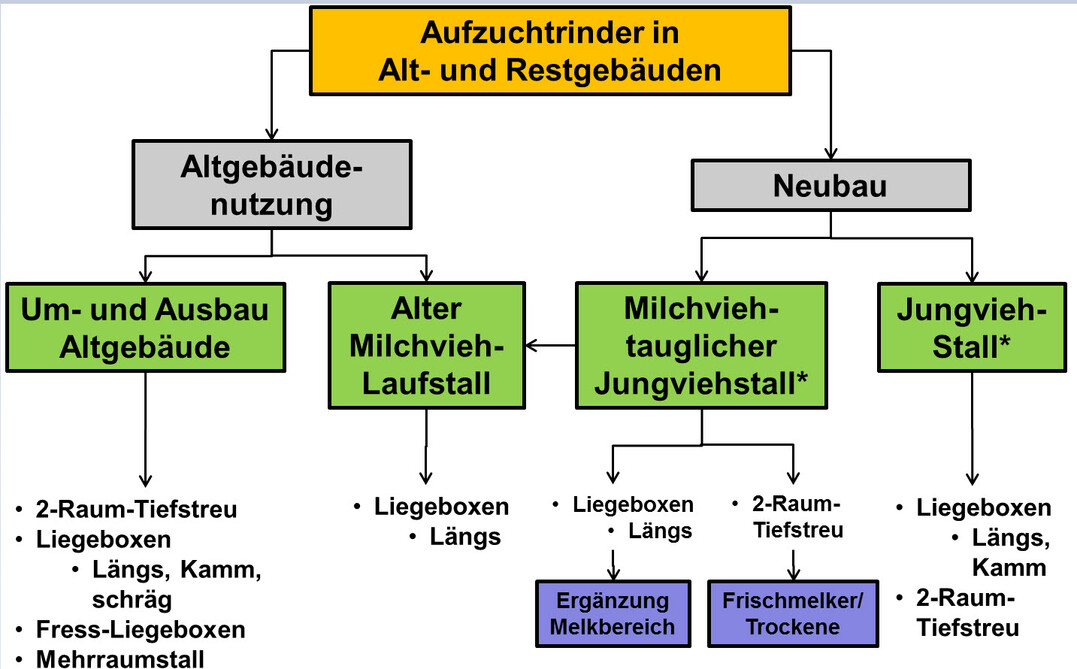 Das Resultat ist meist ein äußerst unterschiedlicher Bedarf an Jungtierplätzen, die vorgehalten werden müssen. So resultiert beispielsweise für einen Milchkuhbestand mit 100 Kühen bei einer Zwischenkalbezeit (ZKZ) von 390 bis 420 Tagen und einem Erstkalbealter (EKA) von 26 bis 28 Monaten und verschiedenen Bestandsergänzungsraten eine stark unterschiedliche Anzahl an erforderlichen Stallplätzen fürs Jungvieh.