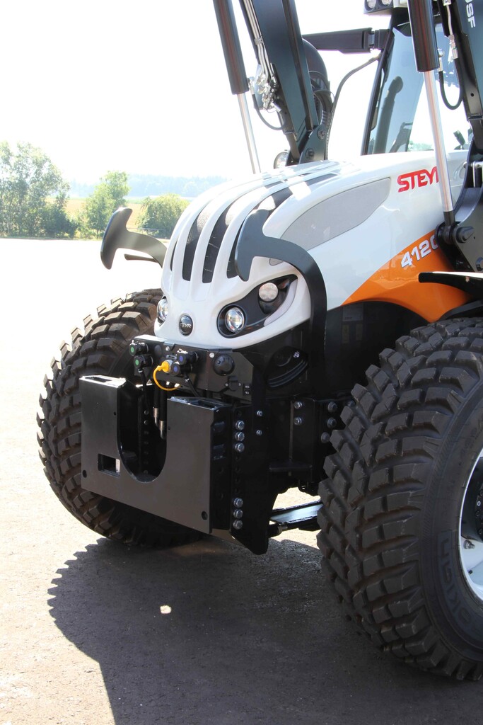Weiter sind drei Zwischenachssteuergeräte für die Fronthydraulik oder einen Frontlader bestellbar. Diese werden einfach und komfortabel mit dem elektronischen Joystick in der Armlehne gesteuert.
