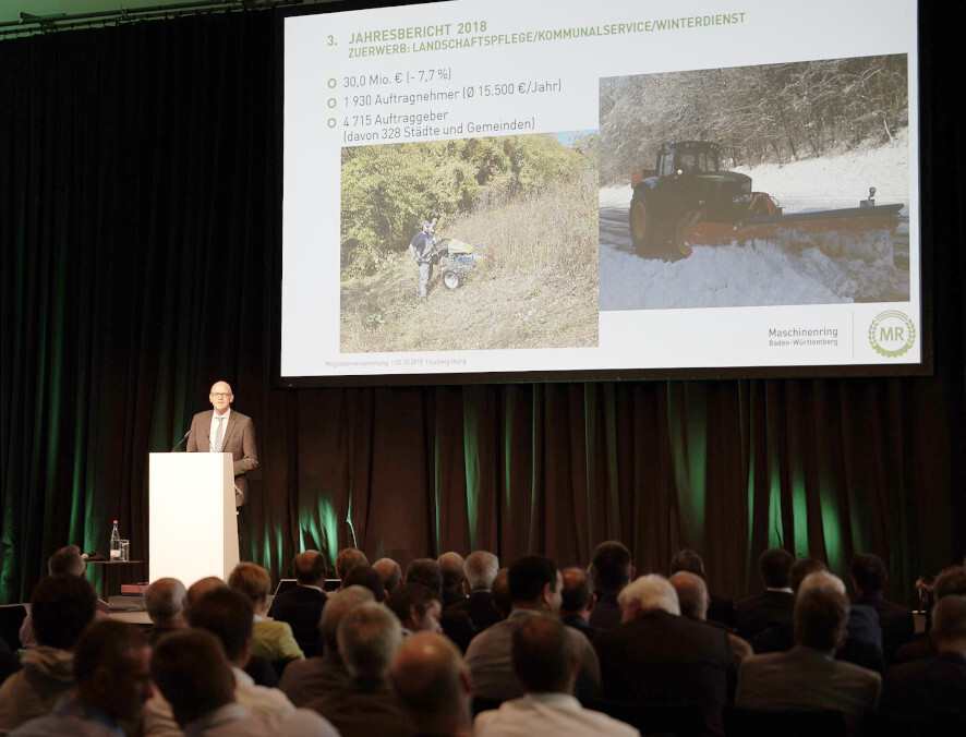 Nach dem Jahresbericht 2018 von Geschäftsführer Dr. Hansjörg Weber verzeichnen die 28 Maschinenringe im Land trotz fortschreitendem Strukturwandel einen stetigen Mitgliederzuwachs. 2018 zählten die Maschinenringe 28 371 Mitglieder (plus 86), wovon 25.167 land- und forstwirtschaftliche Betriebe bewirtschaften. Deren Anteil an der gesamten landwirtschaftlichen Nutzfläche erreicht 67 Prozent, ihre durchschnittliche Betriebsgröße 38,7 ha.