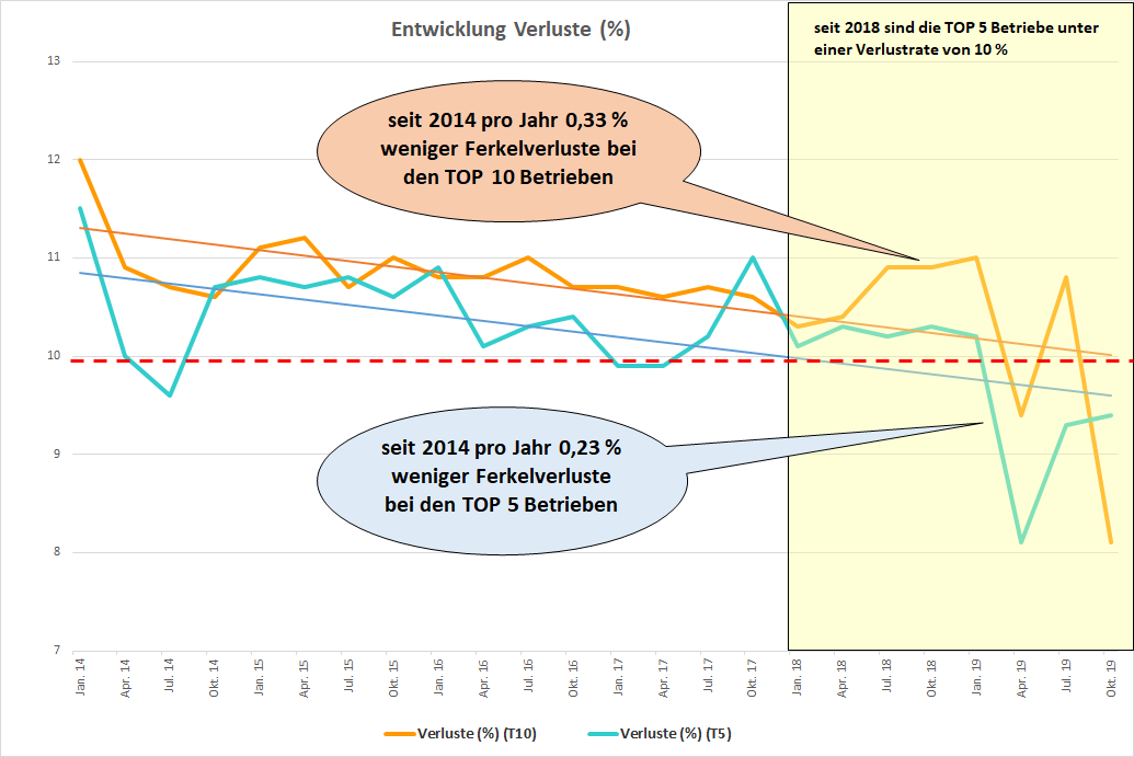 Ferkelverluste trotz steigender Leistungen weiter rückläufig