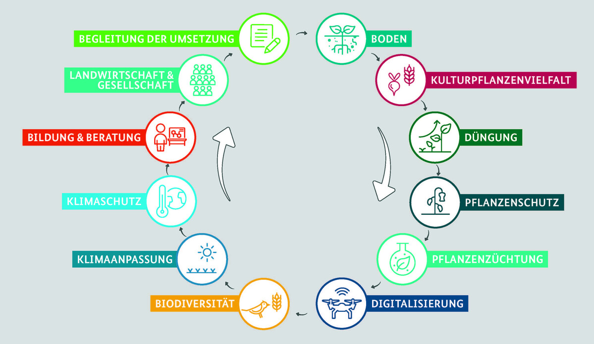 So ist es das Ziel, bis 2030 das Kulturpflanzenspektrum jedes Betriebs auf mindestens fünf verschiedene Kulturpflanzen zu erhöhen. Auch setzt das Bundeslandwirtschaftsministerin große Hoffnung in neue Züchtungsmethoden und ein modernisiertes Zulassungsrecht in der EU. Es geht um die Entwicklung klimastabiler Pflanzen, die zudem mit weniger Pflanzenschutzmitteln auskommen, weil ihnen Schädlinge nichts anhaben können.