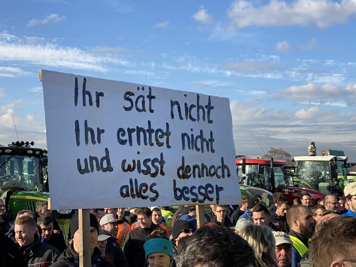 Am 17. Januar haben sich erneut tausende Landwirte auf den Weg nach Stuttgart gemacht. Die Initiative „Land schafft Verbindung“ hatte deutschlandweit zu Protesten aufgerufen. Auf dem Cannstatter Wasen fand eine Kundgebung statt, zu der sich nach Angaben der Veranstalter etwa 4000 Bäuerinnen und Bauern mit rund 2500 Traktoren einfanden. Der Unmut der Demonstrierenden richtete sich hauptsächlich gegen die Verschärfung der Düngeverordnung, aber auch gegen das Mercosur-Handelsabkommen sowie gegen das geplante Agrarpaket der Bundesregierung. Außerdem forderten sie von Politik und Verbrauchern mehr Anerkennung für ihre Arbeit.
