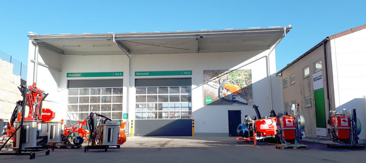 -maschinen, Sonderkulturgeräten und Kleinmotoristik genutzt. Die neu gewonnene, 400 Quadratmeter große Werkstattfläche, wo Brückenkran, Absauganlage und Bremsenprüfstand ihren Platz haben, steht vor allem für Großmaschinen zur Verfügung. Der Betrieb liegt im Einzugsgebiet wichtiger Württemberger Weinbaugebiete und reicht vom Stromberg und Heuchelberg bis hinein ins Neckartal. Zusätzlich zur Betreuung der Kunden am Standort Brackenheim werden diese auch durch mobile Servicefahrzeuge und Zustell-Logistik unterstützt.