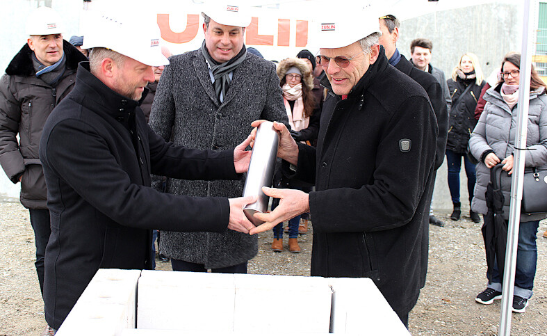 Während Glaser in den Räumen der LBV-U sein Grußwort sprach, erläuterte der Technische Bereichsleiter Jochen Keller, ED. Züblin AG am Standort Langenargen, den uralten Brauch der Grundsteinlegung draußen bei kaltem Wind auf der Baustelle. Früher ging es bei der Zeremonie darum, ein Bauopfer zu bringen, um den Hausgeist, der später im Gebäude lebt, entsprechend milde zu stimmen, so Keller. Heute sorgten Statiker, Gutachter und Bauleiter dafür, dass ein Gebäude über viele Jahre stehenbleibt. Die Landwirtschaft jedenfalls könne einen guten Geist gut gebrauchen. „Wir als Züblin sehen uns mit der Landwirtschaft eng verbunden und freuen uns sehr, dass wir dieses Projekt realisieren dürfen. Wir sind stolz Ihr Baupartner zu sein, für dieses neue Verwaltungszentrum des Landesbauernverbandes“, bedankte sich Keller.