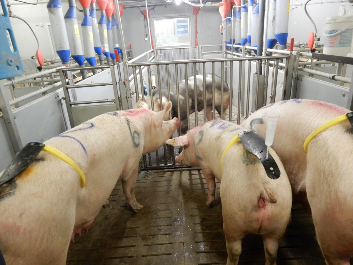 Kontaktaufnahme zwischen Eber und Sau: Eber und Sauen begegnen sich über die Besamungsbucht oder den Eberlaufgang.