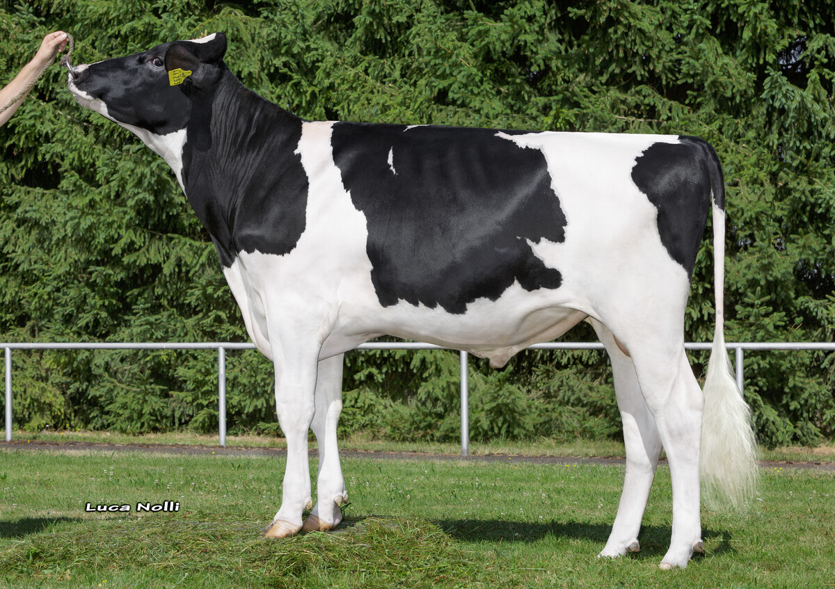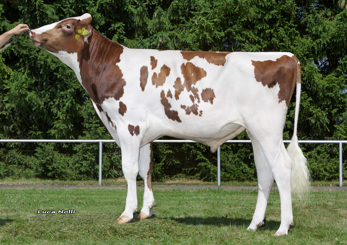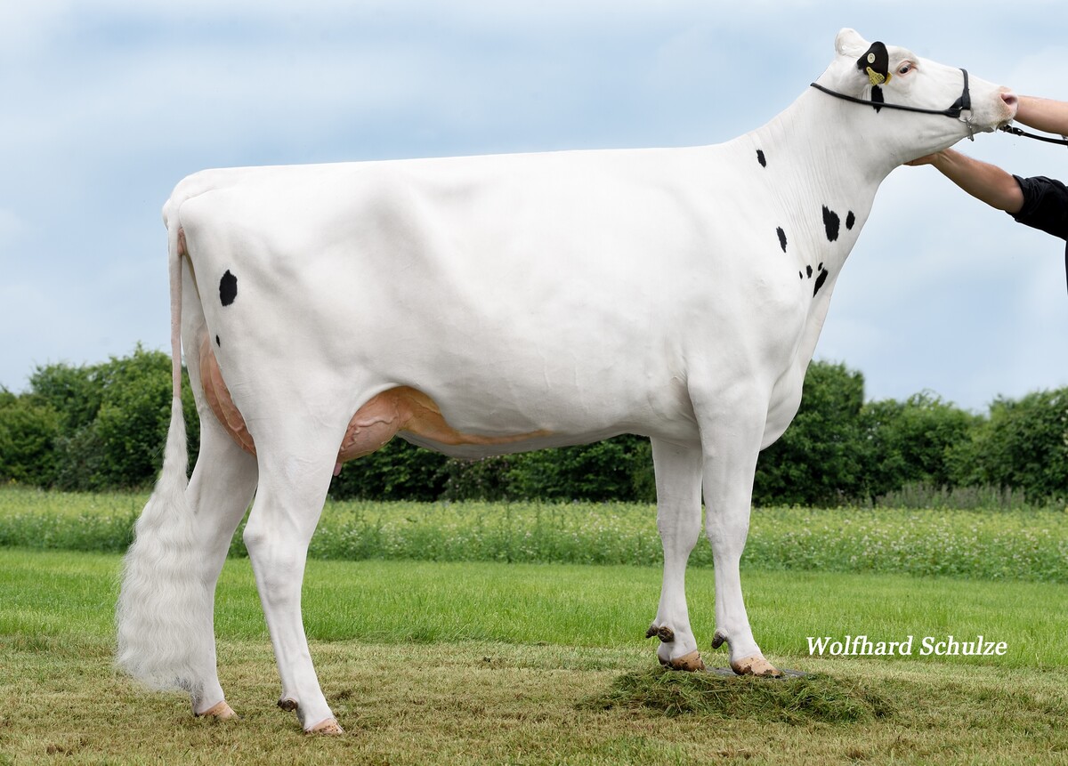 Der bereits als genomischer Jungbulle stark eingesetzte homozygot hornlose Erice PP hat jetzt 367 Töchter in der Zuchtwertschätzung und konnte sich um sechs Punkte auf einen RZG von 131 steigern. Besonders in der Milchmenge legte er zu. Wegen der Strichplatzierung hinten, den längeren Strichen und der guten Melkbarkeit ist er für AMS-Betriebe geeignet.