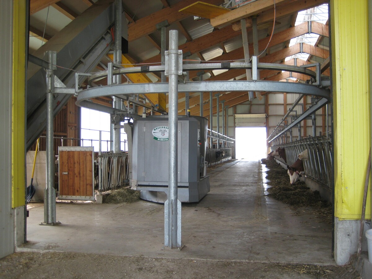 In der Praxis findet man neben den häufiger anzutreffenden mobilen und schienengeführten Misch-und Verteilwagen zunehmend auch mobile, selbstfahrende Einheiten. Die Frage der Futtervorratslagerung in eigens dafür konzipierten Futterbunkern mit Dosiertechnik oder als Silageblock auf betoniertem Untergrund mit Entnahme und Dosierung mittels Greifer ist hierbei eine individuelle Entscheidung.