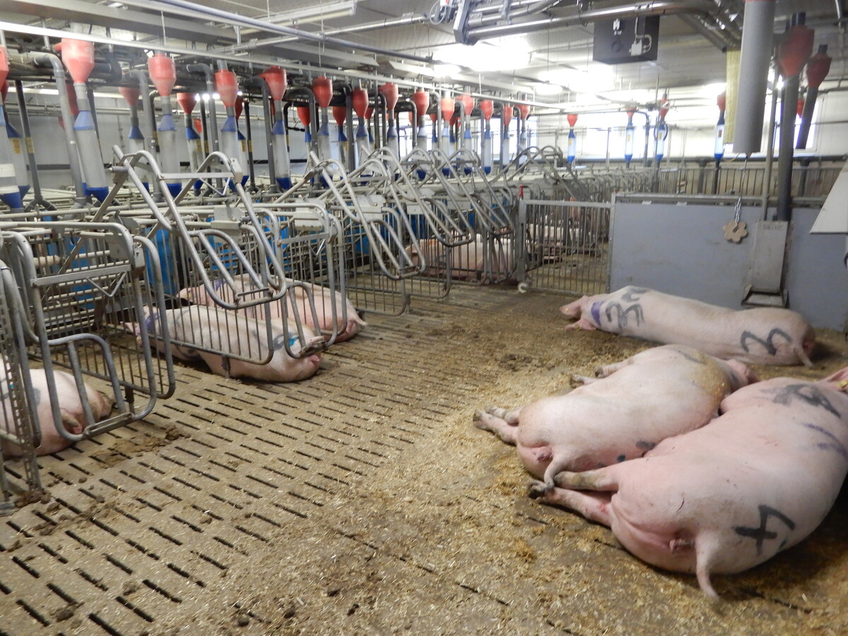 Deckzentrum (§?30): Künftig gilt auch hier eine Pflicht zur Gruppenhaltung und die damit verbundenen Platz- (2,25 Quadratmeter (m²) für Altsauen und 1,65?m² für Jungsauen in Gruppen von sechs bis 39 Tieren) sowie Strukturvorgaben (Liegebereich). Die Einzelhaltung im Kastenstand auf einer Fläche von 2,20 Metern (m), davon mindestens 1,27?m geschlossen mit einem maximalen Schlitzanteil von sieben Prozent (%), gibt es nur noch im Abferkelbereich. Die Zeit vom Absetzen bis zur Besamung dient der Gruppen- und Rangordnungsbildung. Sofern ein Umtrieb erforderlich ist, sollte sie auch aus Tierschutzgründen beendet werden, wenn die Rausche in der Gruppe beginnt. Das ist bei hochfruchtbaren Sauen schon nach wenigen Tagen der Fall. Für diese Zeit muss eine uneingeschränkt nutzbare Bodenfläche von mindestens 5?m² pro Tier bereitstehen.