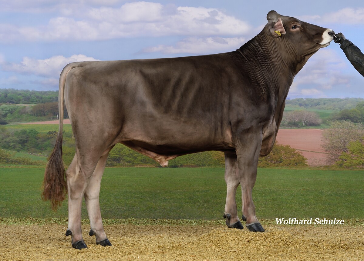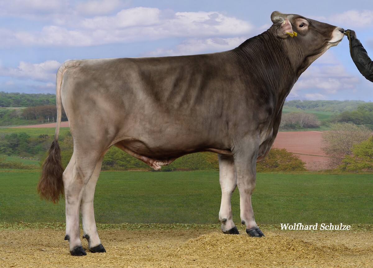 Darüber hinaus kann die Rasse Brown Swiss inzwischen auf ansprechende hornlose Bullen blicken. Visor PS, der bereits als geprüfter Bulle weit oben in der Liste steht, kann sich bei einem GZW von 140 bestätigen. Bei einer knapperen Milchmenge bringt er neben der Hornlosigkeit positive Inhaltsstoffe und typ- und euterstarke Töchter.