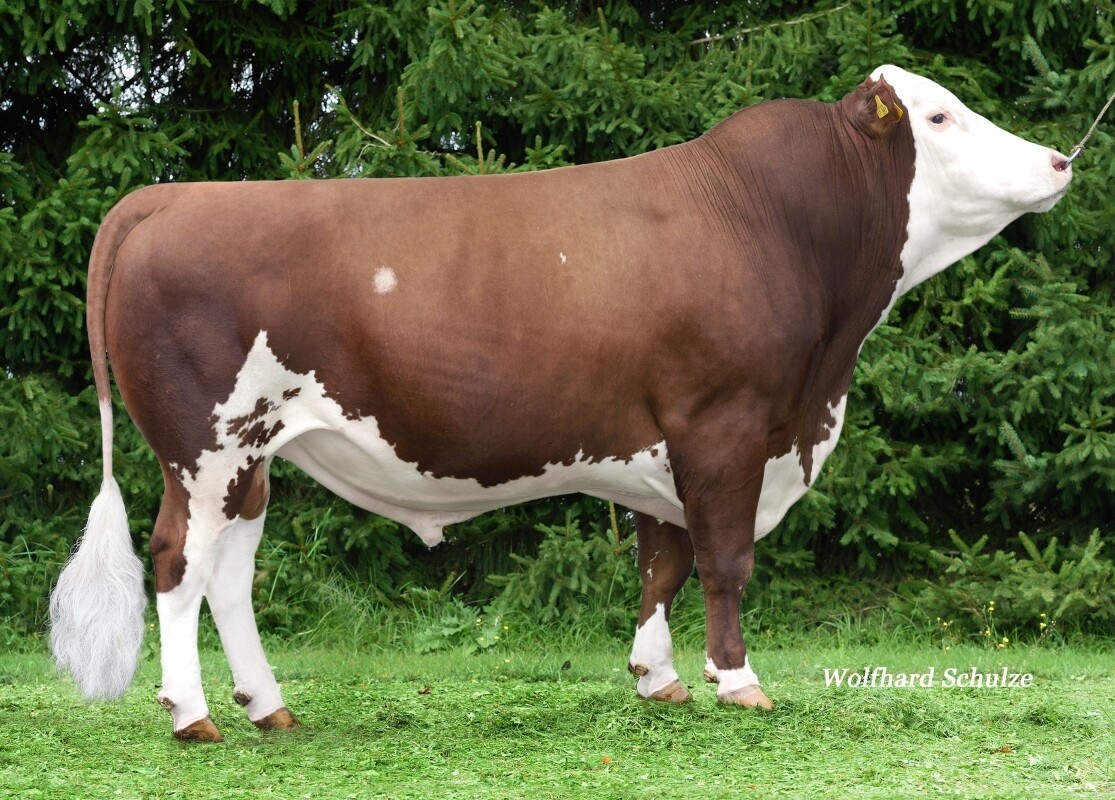 Als nächstes folgt der Vorderwälderbulle Magnus, der mit einem GZWvon 114 und einem MW von 115 anhand 28 Töchtern stabil blieb. In der Fitness kommt er auf einen Wert von 99, im FW auf einen Wert von 100. Die Inhaltsstoffe sind unterdurchschnittlich, die Melkbarkeit liegt bei 102 und der EGW bei 103. Die Rahmennote der 15 bewerteten Töchter liegt bei 95 mit einer Kreuzbeinhöhe 139,7 cm. Bemuskelung, Fundament und Euter sind dreistellig. Mit einem Kalbeverlauf paternal von 102 und einem VIW von 107 kann Magnus auch für Rinder eingesetzt werden