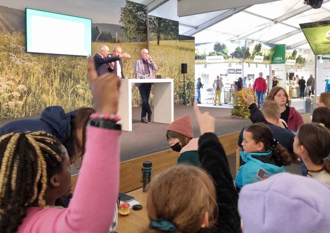 Die erste Schülerpressekonferenz auf dem Landwirtschaftlichen Hauptfest in Stuttgart verdeutlichte, dass die Fragen der jungen Generation sich nicht wesentlich von denen ihrer Eltern unterscheiden: „Wie sicher ist unsere Lebensmittelversorgung?“ lautete das Thema auf der größten süddeutschen Agrarmesse – und Bauernpräsident Joachim Rukwied und Verbraucherschützer Dr. Eckhard Benner beantworteten dazu eine Stunde lang die Fragen von Jungen und Mädchen aus Schulen in Stuttgart und dem Umland der Landeshauptstadt von Baden-Württemberg.