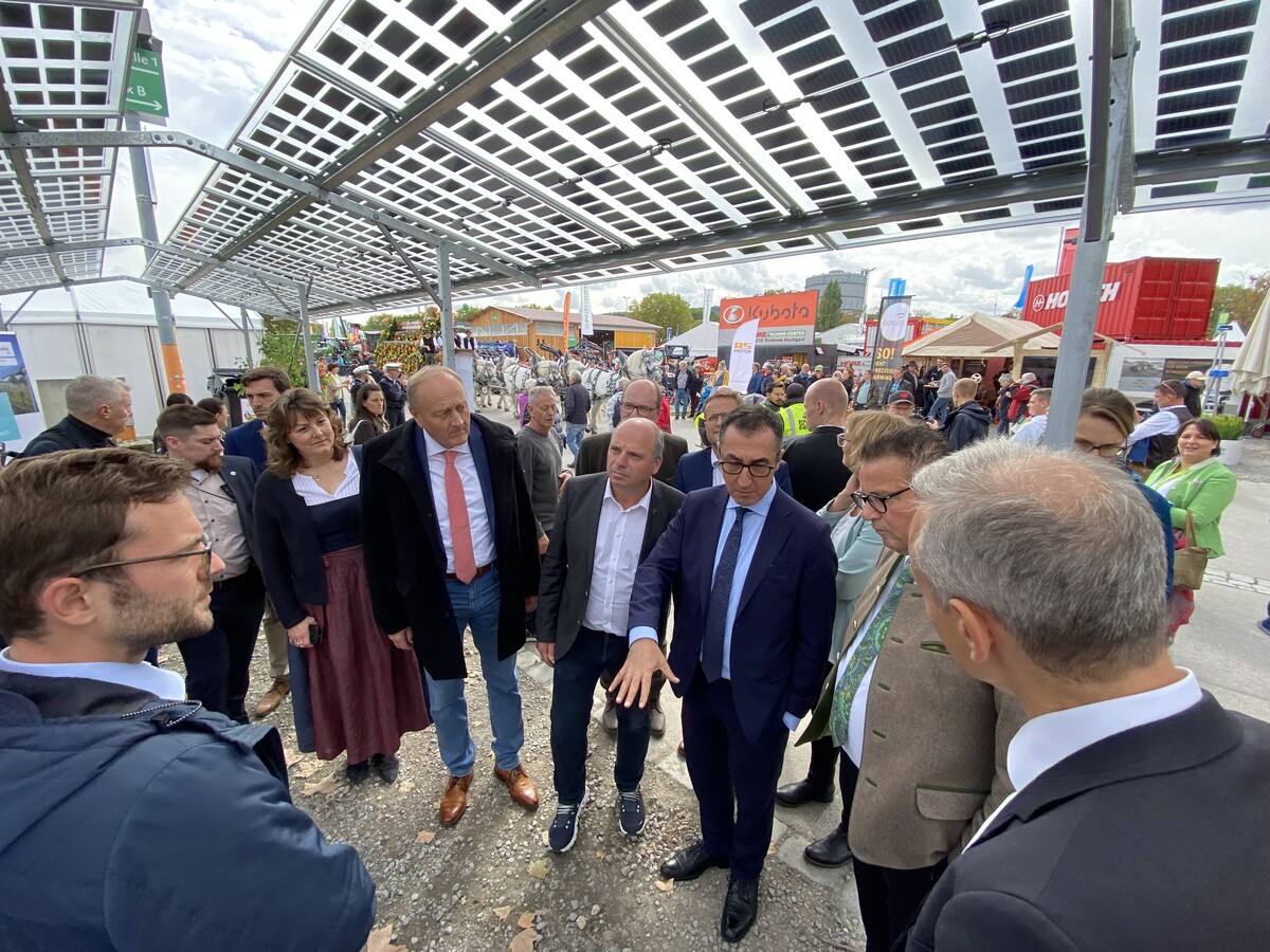 Unter dem Motto „LANDWIRTSCHAFT erLEBEN!“ präsentierten sich mehr als 500 Aussteller aus dem Inland und dem benachbarten Ausland auf dem Wasen. Dabei gab es auch einige Neuerung zu sehen. Angesichts der Energiekrise stand vor allem ein Methangas-Schlepper im Blickpunkt, der erstmals auf dem LWH in Stuttgart zu sehen war. Auch das nachhaltige Projekt „Agri-PV“ vor der Halle 1 fand viel Beachtung. Bei dem vom Fraunhofer Institut vorgestellten Verfahren eröffnet sich die gleichzeitige Nutzung von Flächen für die landwirtschaftliche Pflanzenproduktion (Photosynthese) und die Stromproduktion (Photovoltaik). Dabei steigert Agri-PV die Flächeneffizienz und ermöglicht den Ausbau von Photovoltaik-Elementen bei gleichzeitigem Erhalt fruchtbarer Ackerflächen für die Landwirtschaft.