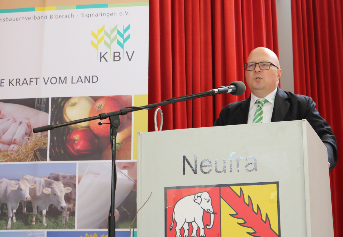 "Erstens brauchen wir ein verändertes Selbstverständnis, hin zum Anbieter von Lösungen. Und zweitens auch ein neues Rollenverständnis. Wir müssen weg vom reinen Ablieferer hin zum Unternehmer," meinte Kreisobmann Karl Endriß am 3. Februar in der Donauhalle in Neufra bei Riedlingen mit Blick auf das Thema Zukunftsbauer.