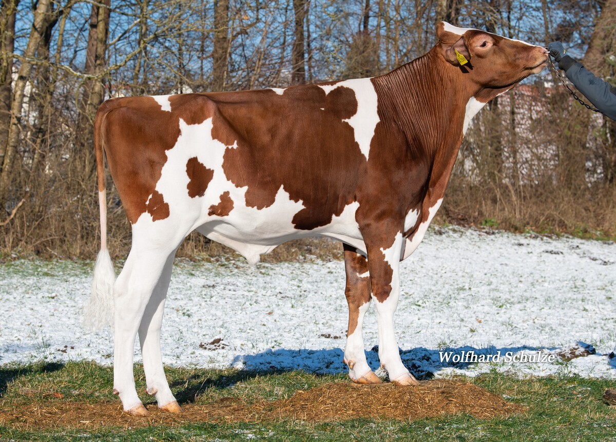 Sehr positiv ist auch die Platzierung der rotbunten Bullen: Nicht nur, dass sowohl vier Bullen genomisch unter den Top 50 sind, sondern auch vier geprüfte Bullen zu dieser Auswahl gehören. Mit Redford (RZG 160) stellt die RBW die aktuelle Nummer drei der Red Holstein-Zucht. Redford ist als Ranger-Sohn alternativ gezogen und kann durch eine gute Produktion und ein sehr gutes Exterieur überzeugen. Er geht, wie viele wichtige rotbunte Bullen, auf die Formation Splendor-Familie zurück und bringt zudem hochwertiges Schwarzbuntblut in die Rotbuntzucht. Bei mehr als plus 1900 Kilogramm Milch bringt er bestes Exterieur mit überragenden Fundamenten und Eutern und kann sowohl als Bullenvater als auch als Exterieurbulle breit genutzt werden.