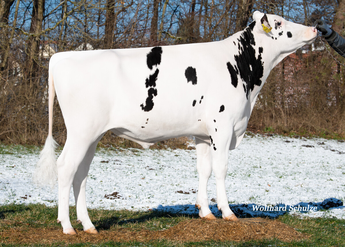 Auch Freesole bietet als Freestyle-Sohn interessantes Blut auf sehr hohem Niveau (RZG 155). Er stammt aus der Roxy-Familie und wird mittelrahmige, spätreife Tiere hinterlassen, die sich auf sehr guten Fundamenten bewegen und beste Euter ausweisen. Er verfügt mit 130 über einen extrem hohen Roboterzuchtwert, da er hoch aufgehängte Euter mit längeren Strichen produziert. Mit Carus P (RZG 151) kommt ein hornloser Crespo-Sohn in den Einsatz, der neben Leistung sehr komplettes Exterieur, längere Striche und ebenfalls einen sehr hohen Roboterzuchtwert zeigt.