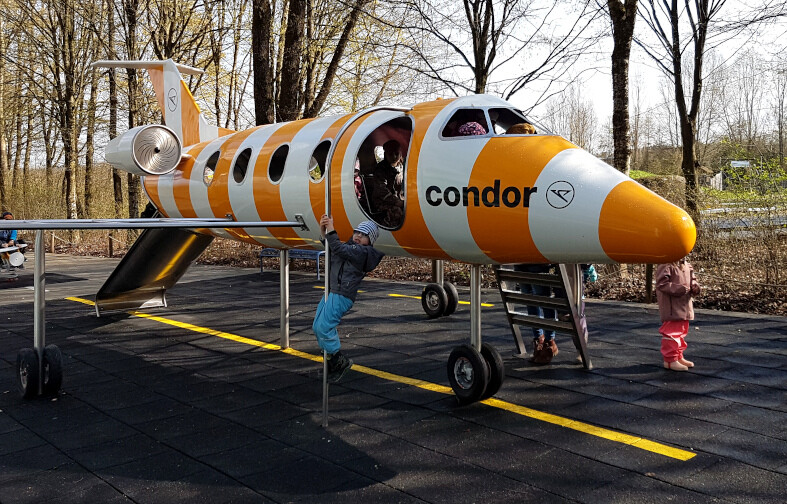 Kooperationspartner, der den Kindern die Welt des Fliegens näherbringen soll, ist Condor. Eingerichtet wurde eine lange Kulissenwand in Zusammenarbeit mit dem Flughafen Friedrichshafen. Auch hier gibt es einen Foto-Point. „Wie kommen die orangen Streifen auf den Flieger? Die werden jetzt ziemlich genau ein Jahr alt“, erzählt sagt Lena Schulz von der Condor Flugdienst GmbH. Der Markenauftritt im Streifenlook wurde von der Airline bewusst gewählt, um sich von der Konkurrenz abzuheben. „Wir sind sehr stolz darauf, diese Streifen in unserer neuen DNA verankert zu haben“, sagt Lena Schulz. Das Spieleland sei für sie ein Herzensprojekt, nicht zuletzt auch, weil sie in der Gegend aufgewachsen ist, sagt sie.