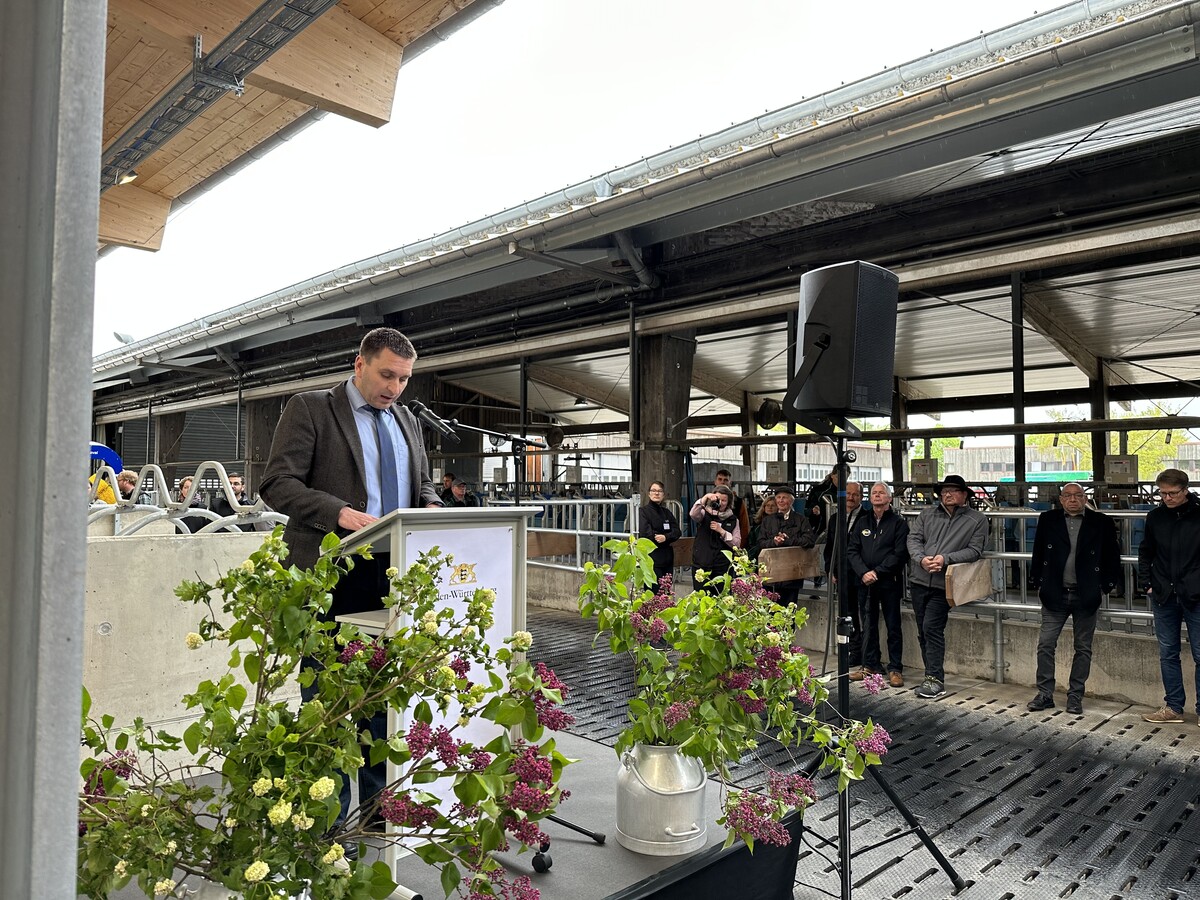 "Mit den beiden Neubauten könne man vor allem Entwicklungen im Bereich Digitalisierung unter dem Stichwort ‚Milchviehhaltung 4.0‘ aufgreifen", betonte Peter Hauk MdL, Minister für Ernährung, Ländlichen Raum und Verbraucherschutz anlässlich der Bauübergabe am LAZBW in Aulendorf im Landkreis Ravensburg.