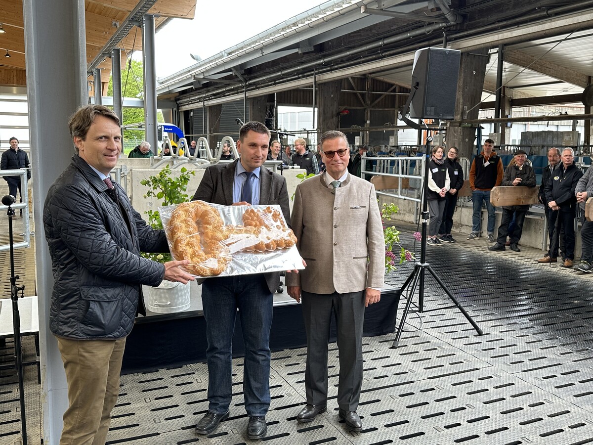 Diese Woche wurden am Landwirtschaftlichen Zentrum Baden-Württemberg (LAZBW) die Schlüssel für den neuen Kälberstall und einen Milchviehstall mit automatischem Melksystem (AMS) übergeben. Das Land investiert derzeit insgesamt neun Millionen Euro an der Lehr- und Forschungseinrichtung des Landes für Rinderhaltung, Grünlandwirtschaft, Milchwirtschaft, Wild und Fischerei in Aulendorf.