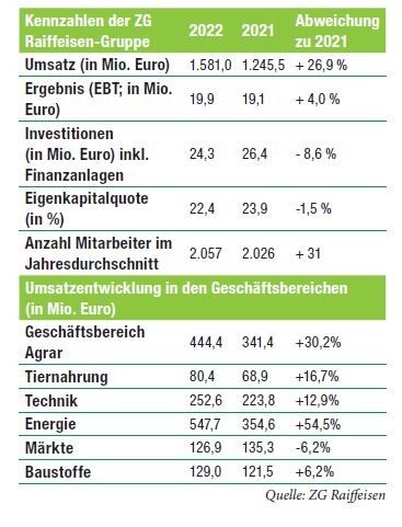 Die ZG Raiffeisen-Gruppe blickt erneut auf ein gutes Geschäftsjahr zurück. Bei einem Umsatz von 1,58 Mrd. Euro erwirtschaftete das Unternehmen mit Sitz in Karlsruhe 2022 ein Ergebnis vor Steuern (EBT) von 19,9 Mio. Bei den Mitgliederzahlen vermeldet die genossenschaftliche Konzernmutter auf ihrer Bilanzpressekonferenz am 21. Juni in Karlsruhe einen Höchststand.