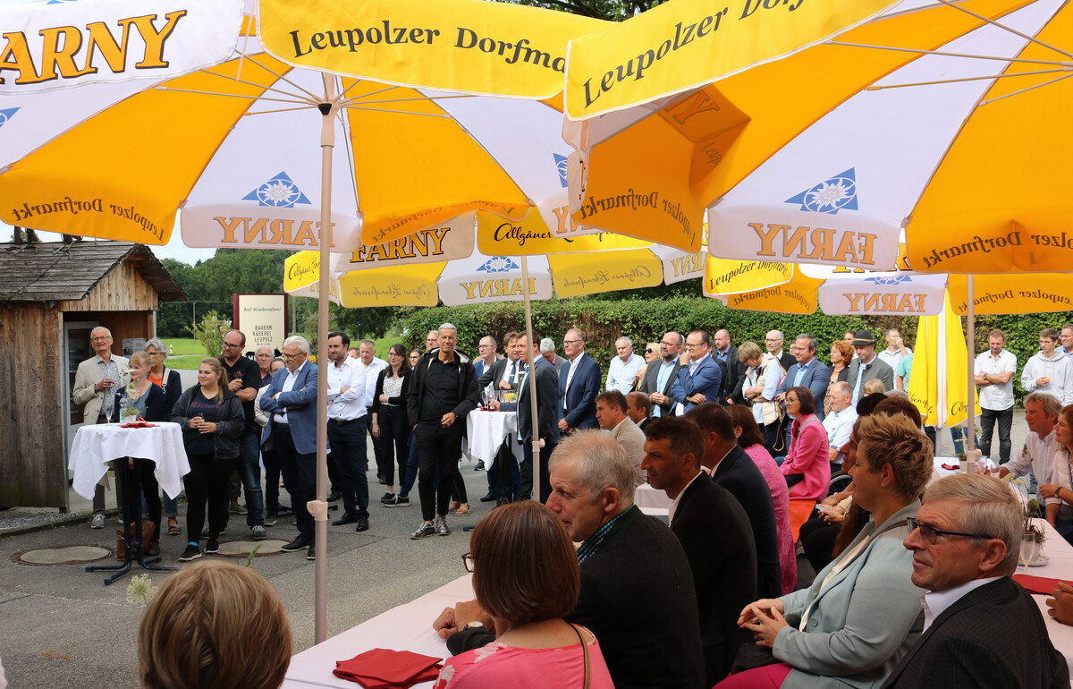 Agrarminister Peter Hauk und Dr. Roman Glaser, Präsident des Genossenschaftsverbandes (BWGV), besuchten am 1. August im Rahmen einer Sommertour die Allgäuer Emmentalerkäserei Leupolz, die an diesem Abend ihr traditionelles Sommer-Grillfest abhielt. Anlass für den Besuch war der neue Erweiterungsbau der Käserei, der nur wenige Tage zuvor, am 28. Juli, offiziell vorgestellt wurde. Den kirchlichen Segen für den Neubau gab Pater P. Jordin Sunny Cst von der katholischen Kirche aus Wangen.