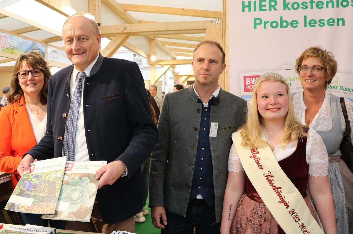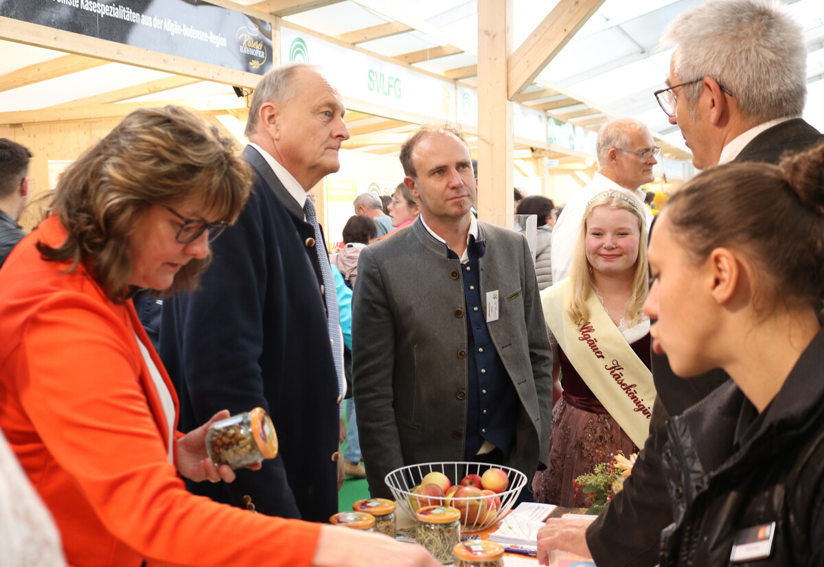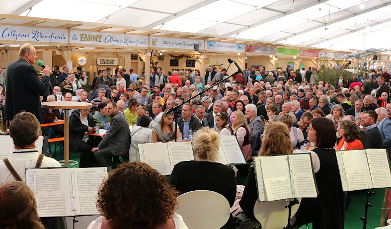 Musikalisch begleitet von der Bauernkappelle Oberschwaben war in der Halle 9 zur Bauernkundgebung am 22. Oktober ein Durchkommen nur noch schwer möglich, als Bauernpräsident Joachim Rukwied von den Kreisverbänden, den Landfrauen, der Landjugend und zahlreichen Besuchern zur Bauernkundgebung herzlich empfangen wurde. „Die Landwirtschaft im Kreis Ravensburg, in Oberschwaben und im Allgäu ist stark und produktiv“, zeigte sich Franz Schönberger, Vorsitzender des Bauernverbandes Allgäu Oberschwaben selbstbewusst bei der Begrüßung auf dem Grünen Pfad.