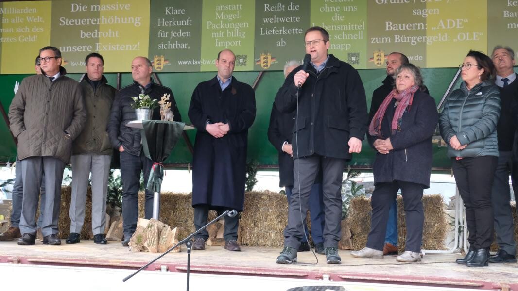Das bestätigten auf den Kundgebung Landwirtschaftsminister Peter Hauk sowie Martin Hahn, agrarpolitischer Sprecher der Grünen. "Wir stehen uneingeschränkt an Ihrer Seite", rief Hauk in die aufgebrachte Menge. Die Landesregierung werde im Bundesrat aktiv gegen die Streichung der Agrardieselbeihilfen sowie der Kfz-Steuerbefreiung stimmen. An die Seite der Bauern wollen sich auch die Landtagsfraktionen der FDP und der SPD stellen. Die Beteuerungen ihrer agrarpolitischen Sprecher, Georg Heitlinger und Jan-Peter Röderer, gingen allerdings im Pfeifkonzert und Buhrufen unter.
