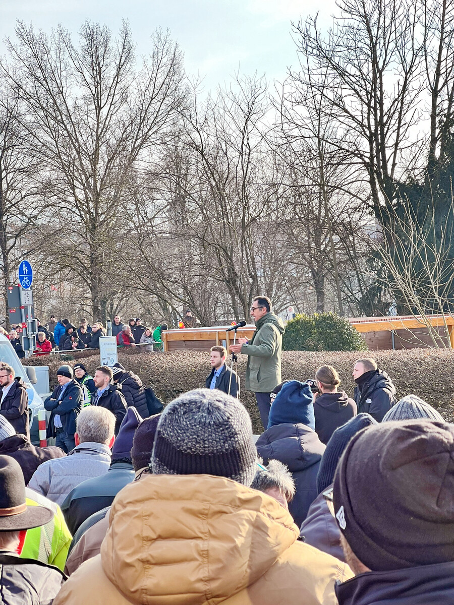 Traditionell gehört die Bauernkundgebung zum letzten Tag des Kalten Marktes in Ellwangen. In diesem Jahr war alles etwas anders. Das zeigte schon der Weg zur Veranstaltung. Unzählige Traktoren blockierten Ellwangen, direkt vor der Ellwanger Stadthalle war eine Demonstration angemeldet und die Straße war voll von Traktoren. Die Bauernkundgebung am Mittwoch, den 10. Januar, wurde mit besonderer Spannung erwartet, denn als Hauptredner in der Stadthalle hatte der veranstaltende Bauernverband Ostalb-Heidenheim den Bundeslandwirtschaftsminister Cem Özdemir angekündigt. Insgesamt drängten sich 700 Zuhörer in die Stadthalle und auch der Platz davor war gefüllt. Landwirte, aber auch viele interessierte Bürger aus Ellwangen und Umgebung waren gekommen, um mitten in der Aktionswoche der Bauern Özdemirs Rede zu hören.