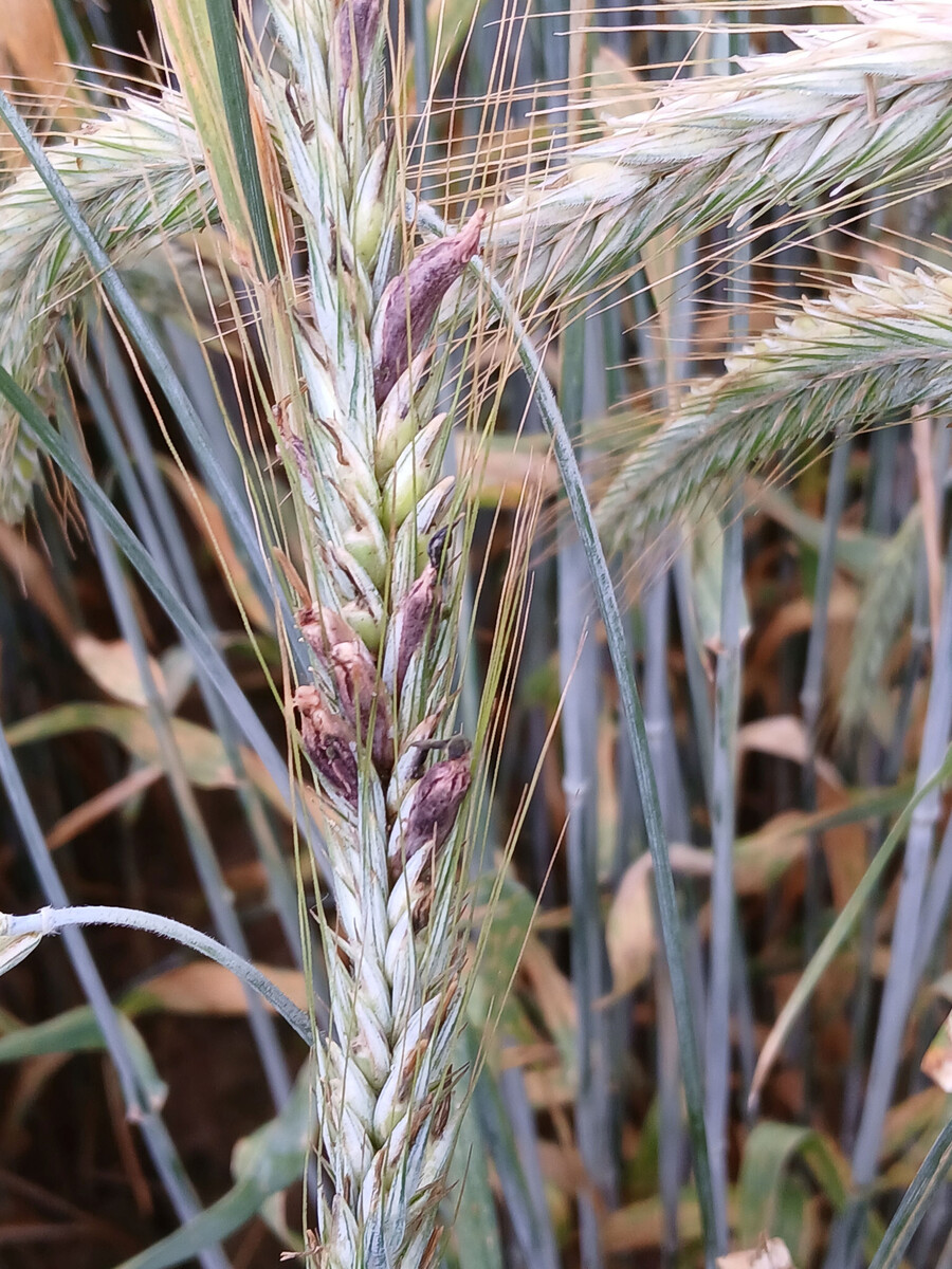 Winterroggen und -triticale werden in den Landessortenversuchen zweifaktoriell geprüft: In Variante 2 (V2) kommen, angelehnt an die Vorgaben des integrierten Pflanzenschutzes, Fungizide und Wachstumsregler zum Einsatz; in der reduzierten Variante (V1) wird auf diese Pflanzenschutzmaßnahmen verzichtet. Die baden-württembergischen Versuche wurden bei guten Bedingungen Ende September/Anfang Oktober gesät. Der Aufgang war einheitlich. Aufgrund des milden Winters gab es keinerlei Auswinterungen, und die Bestände konnten vorzeitig in die Vegetation starten. Mäßige Temperaturen und überdurchschnittliche Niederschläge beherrschten das Frühjahr, sodass sich früh Pilzinfektionen etablieren konnten. Dominierende Krankheiten waren bei Winterroggen Rhynchosporium und Braunrost, in der Triticale neben Rhynchosporium vor allem Blattseptoria. Gelb- und Braunrost traten in einzelnen Sorten auf, spielten aber nur eine untergeordnete Rolle. Ein kurzer, heftiger Kälteeinbruch im Frühjahr sorgte bei einigen Sorten für partielle Taubährigkeit. Mutterkorn und vor allem Ährenfusarium waren in dieser Saison an verschiedenen Standorten ein Thema. Die Bestände blieben lange standfest, erst durch Gewitterereignisse und Niederschläge kam es zu sortendifferenziertem Lager kurz vor der Beerntung. Die Ernte erfolgte an fast allen Standorten bei trockenem Wetter und guten Bedingungen. Am Standort Kupferzell hatte die Anwendung eines Vorauflaufherbizids sowohl bei Roggen als auch bei Triticale stärkere phytotoxische Wirkung und dünnte die Parzellen sichtbar aus. Eine zeitige Andüngung und wüchsige Vegetationsbedingungen konnten die Verluste gut kompensieren.