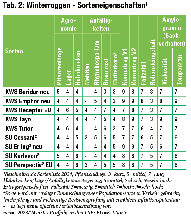 Anmerkung: KWS-Hybriden haben durch das PollenPLUS-System eine stärkere Pollenbildung gegen Mutterkorn. Bei Saaten-Union-Sorten werden bei Z-Saatgut für die Praxis 10 % Populationsroggen zur Mutterkornabwehr eingemischt.