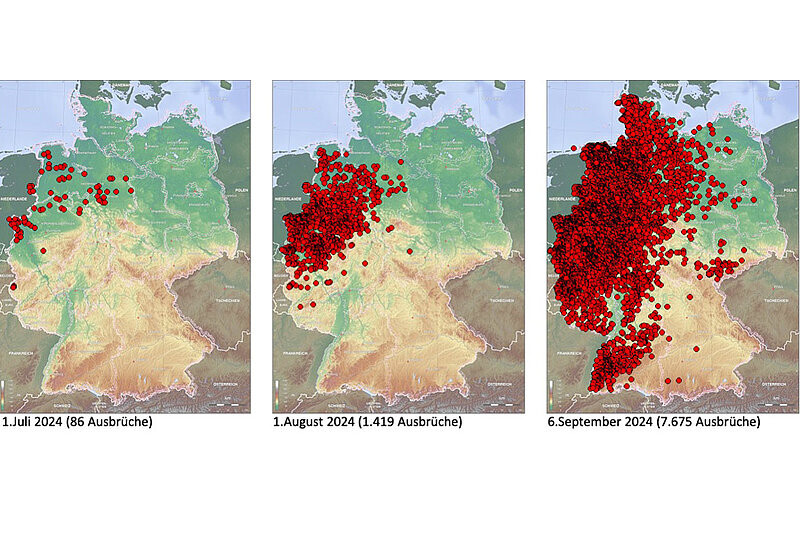 Die Ausbreitung durch die Gnitzen werde im September ihren Höhepunkt erreichen. Hierbei müsse damit gerechnet werden, dass die Infektionswelle bis Ende Oktober 2024 auch bislang nicht betroffene Gebiete erreichen werde. Weiterhin bestehe nach wie vor das Risiko eines Eintrages anderer BTV-Serotypen nach Deutschland. So gebe es derzeit in Frankreich ein aktives BTV-8 Geschehen, das mittlerweile einen ersten Betrieb in der Schweiz erreicht hat. Die Aufrechterhaltung des Impfgürtels im Südwesten der Bundesrepublik mindestens gegen BTV-8 werde daher befürwortet.