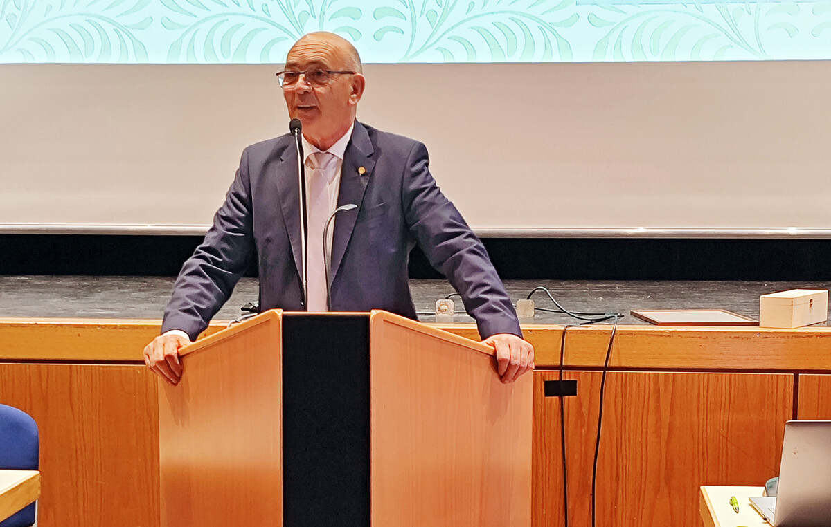 Der scheidende Präsident Franz Josef Müller eröffnete die Versammlung und blickte in seinem Geschäftsbericht auf eine Amtszeit voller wirtschaftlicher Krisen und Herausforderungen für den Erwerbsobstbau zurück. Besonders die politische Lage habe sich in den vergangenen Jahren zunehmend verschärft, so Müller. Er fasste die Entwicklungen unter dem von Bundeskanzler Olaf Scholz geprägten Begriff der „Zeitenwende“ zusammen. Müller kritisierte den stetig wachsenden bürokratischen Aufwand, der den Betrieben immer mehr abverlange. Landwirtschaftsminister Peter Hauk griff in seiner Laudatio ebenfalls das Thema Veränderungen auf. Er warnte davor, die Auswirkungen des Klimawandels zu unterschätzen. In Südeuropa seien diese bereits deutlich sichtbar, und auch für die heimische Landwirtschaft stünden große Herausforderungen bevor. Hauk betonte, dass es eine gesamtgesellschaftliche Aufgabe sei, die durch den Klimawandel zunehmenden Risiken abzufedern. Als Beispiel nannte er die Mehrgefahrenversicherung, mit der Einkommensverluste durch extreme Wetterereignisse gemindert werden könnten. Zahlreiche Laudatoren blickten auf das ehrenamtliche Engagement von Franz Josef Müller zurück. Auch Roswitha Geyer-Fäßler, Vizepräsidentin des Landesbauernverbands (LBV), würdigte Franz Josef Müllers Engagement und hob die gute Zusammenarbeit zwischen dem Obstbauverband und dem LBV hervor.