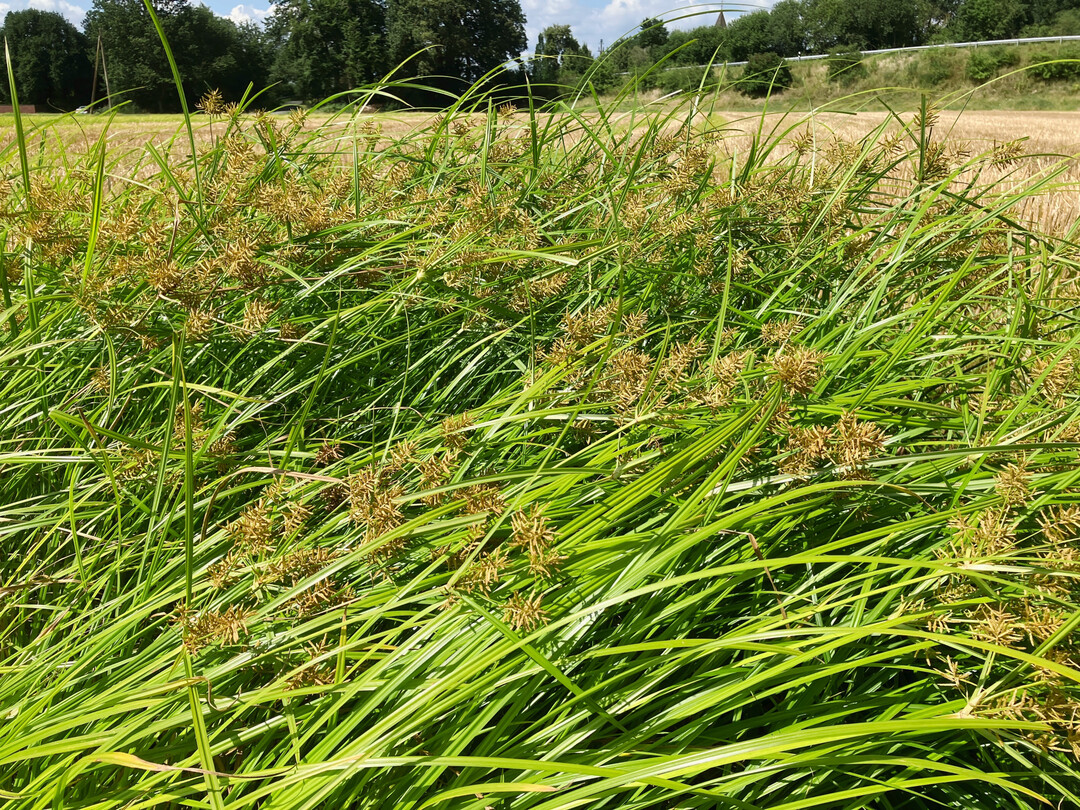 Erdmandelgras (Cyperus esculentus) ist ein Sauergras, das sich in den letzten Jahren auch in Deutschland stark ausgebreitet hat. Ist ein Acker einmal besetzt, ist es fast unmöglich, die invasive Pflanze wieder loszuwerden. Einmal Erdmandelgras = immer Erdmandelgras. Die Vermehrungsfähigkeit ist enorm. Bei hohen Besatzdichten ist ein profitabler Anbau von Kulturpflanzen nicht mehr möglich.